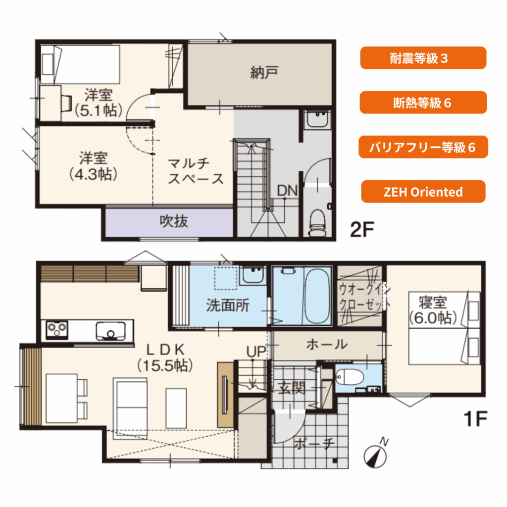 延床面積/95.22㎡(28.80坪) 2階建て