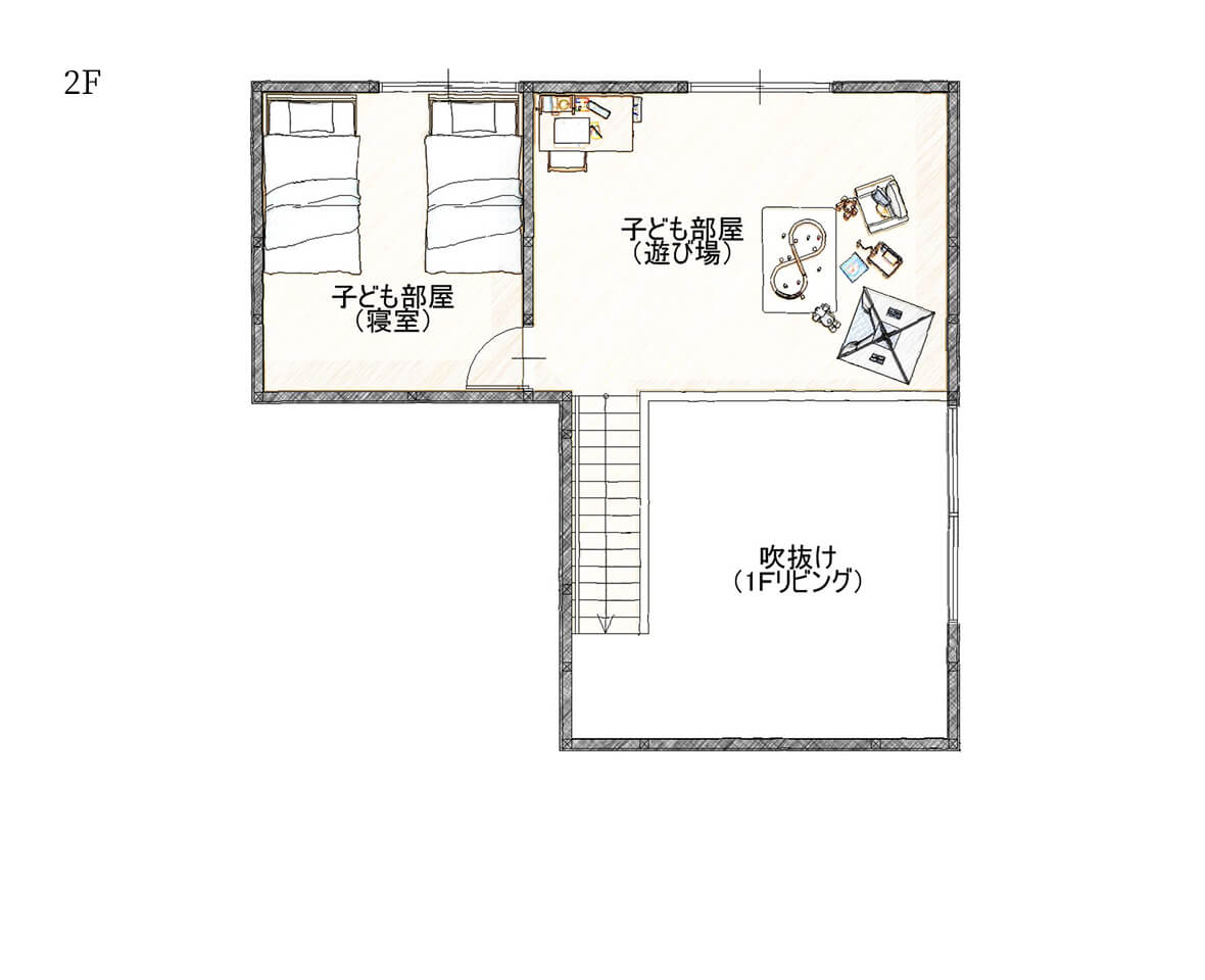 近年の世帯構成やライフスタイルの多様化に対応した1.5階建てのプラン。コンパクトな2階部分を平屋建てにプラスすることで、平屋建ての感覚を保ちつつ、2階建てのメリットを享受できるようになっています。世帯主である夫婦が主に利用する1階部分は、完全な平屋生活を実現し、2階は、子供部屋や将来の趣味室などにライフステージの変化に合わせて活用できます。生涯に渡って快適さと機能性を追求した住まいが実現します。多様な生活様式を持つ家族にとって、理想的な選択肢となります。